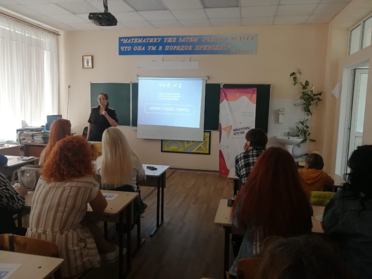 26 апреля 2025 г. в ГБОУ РО «ШККК» советник директора по воспитанию Клюхина Е.В., классные руководители Журавель О.Ю. (7 «А» класс), Ульмейкина А.Н. (11 класс) и Твердохлебова Г. А. (6 «А» класс) провели Всероссийское родительское собрание «Война. Победа. Память. О чем говорить с детьми в год 80-летия Победы».
