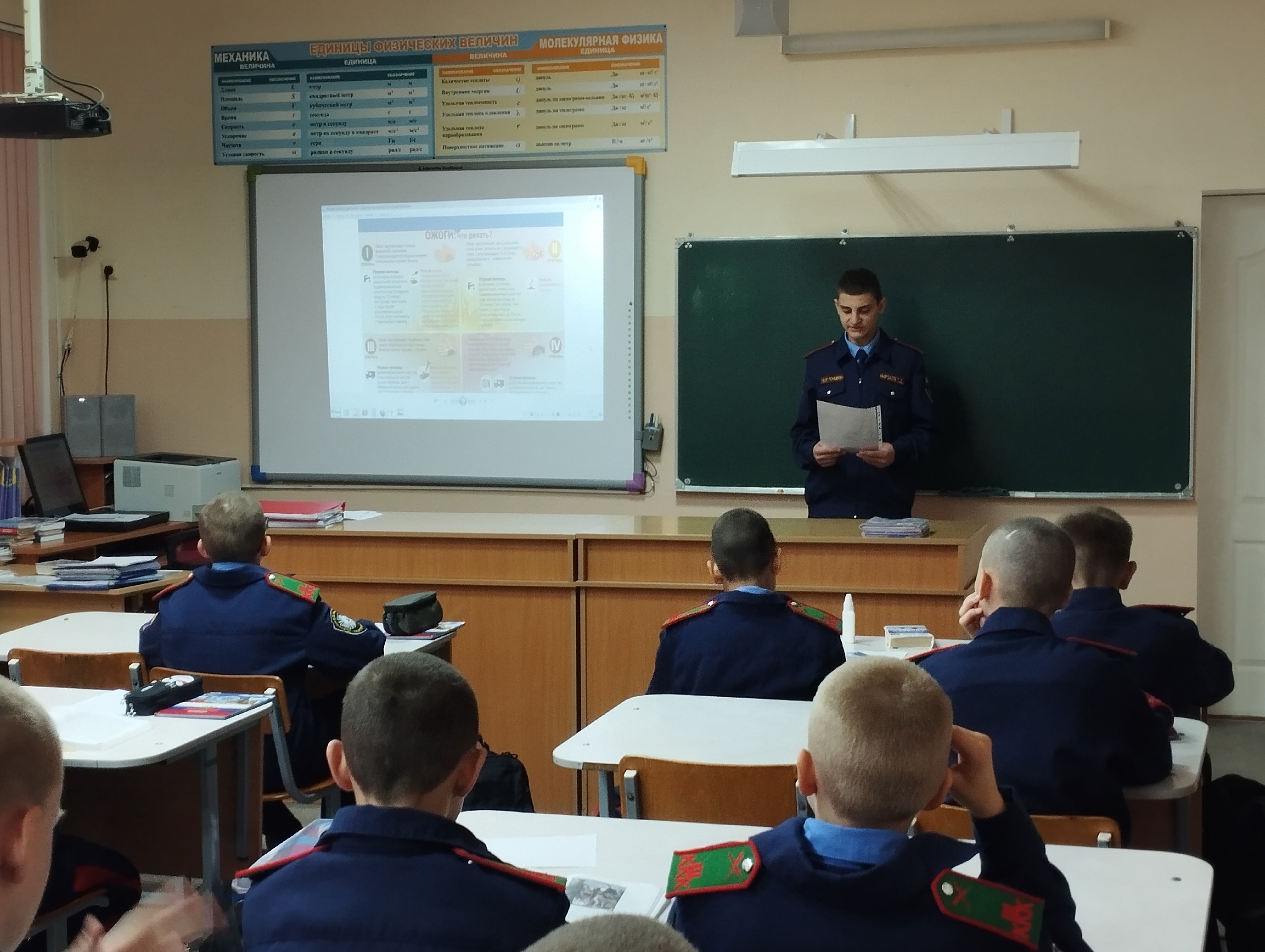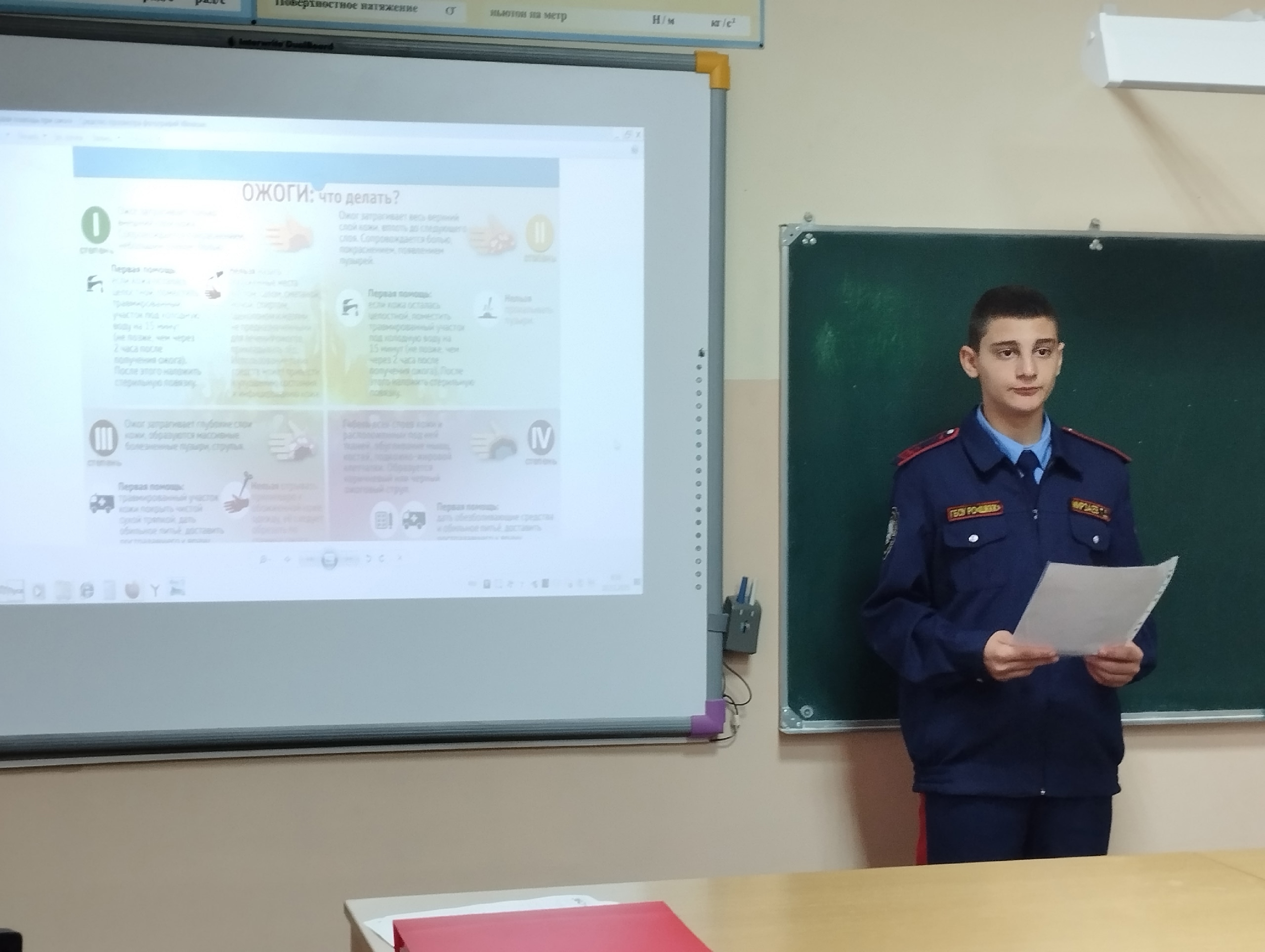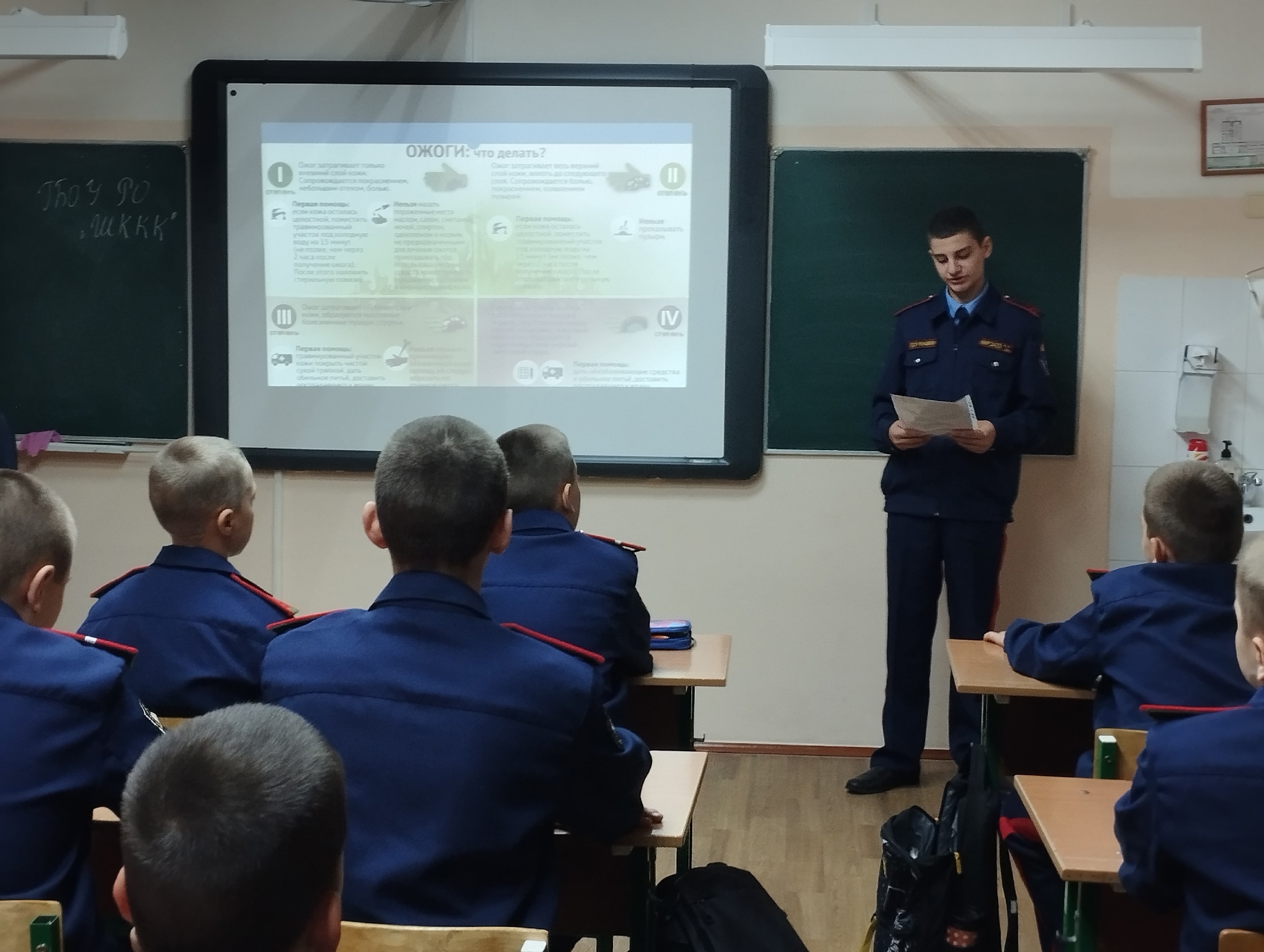 Сегодня в нашем кадетском корпусе состоялась важная образовательная акция: просветительские уроки по оказанию первой помощи при ожогах. Кадет 8″б» класса Мирзаев Тимур провел серию классных часов и бесед, посвященных правильному поведению при ожогах.